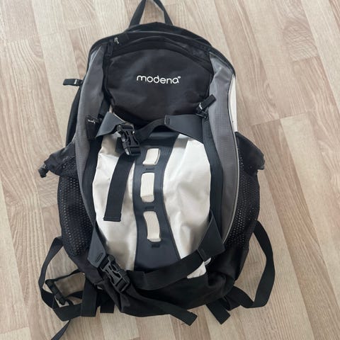 Sekken er ca 75l og har opplegg for drikkesystem. Leies ut med regntrekk.