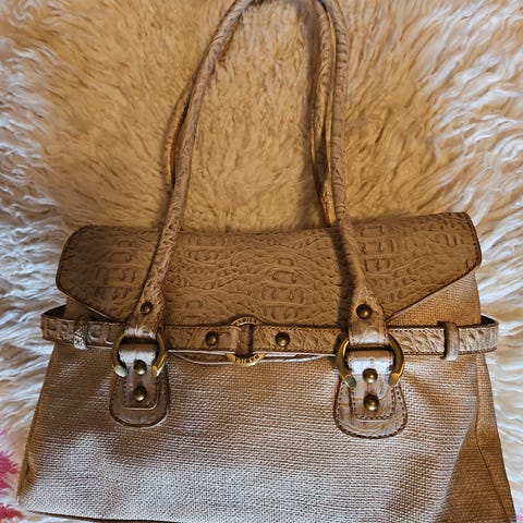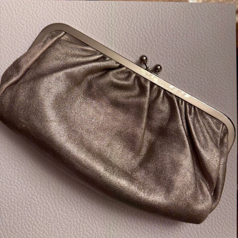 Helt ny ikke brukt. Sølvaktig farge, med avtagbar skulderlenke. Bredde ca 27 cm og høyde ca 17 cm. Følge med et lite speil.