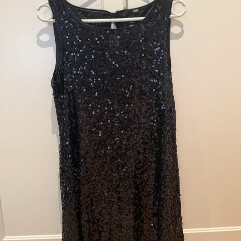 Paljettkjole str s fra hm, brukt et par ganger. Kjolen er svart, fargen på bildene stemmer ikke helt.