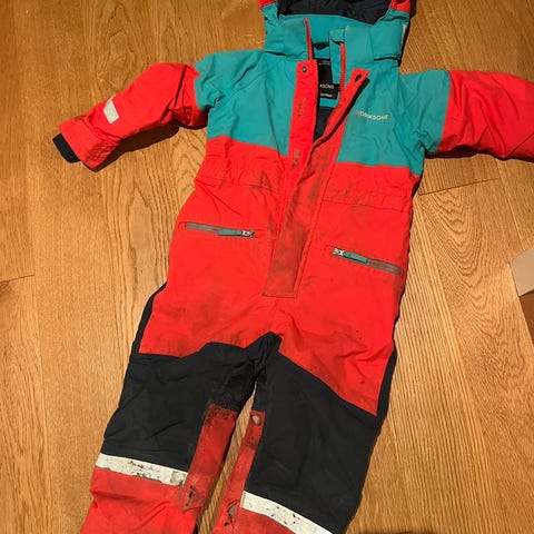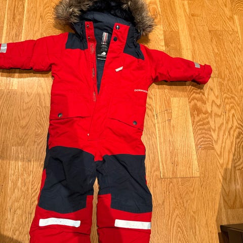 Pent brukt vinterdress uten hull. Dressen er pent brukt av 1 barn, og har mange års bruk igjen. Fantastisk vinterdress med hette. Dressen er lett å bevege seg i for aktive barn ute på vinteren.