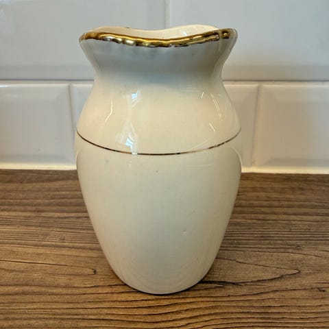 Utvendig, glatt og fin i glasuren, under sees krakkelering.