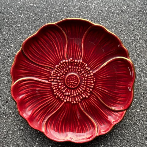 12 stk dype røde dekke tallerkner 32 cm, pent og lite brukt uten skader og slitasje. Selges pr stk 100,- . Alle 12 kan selges samlet for 1000,-.