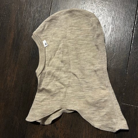 Selger en balaklava i tynn ull fra Papfar. Str 62/6 mmd. Grå. 100% merinoull. Fremstår i god stand.
