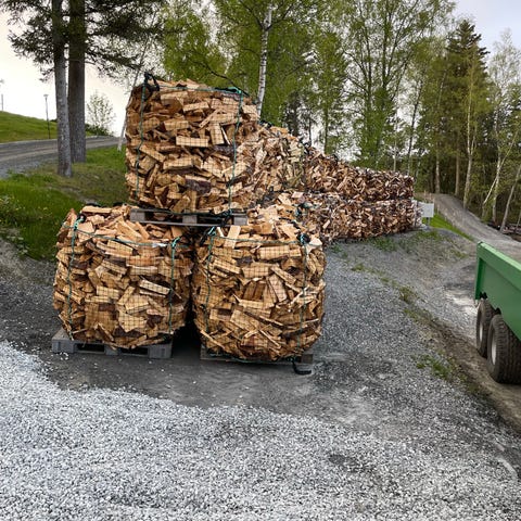Bjørk og Gran ved selges i 1500 l. Sekk.