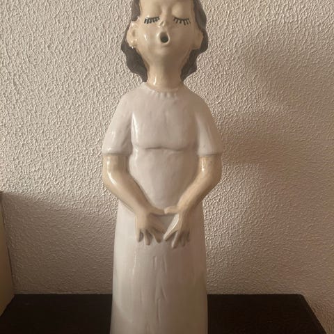 Nydelig skulptur av engel i keramikk fra Lillesand Design. Enkel og veldig fin! Skulpturen er håndlagd og måler 32 cm i høyden. Kan evt sendes mot frakt tillegg. Tar forhåndsbetalt, helst med vips.