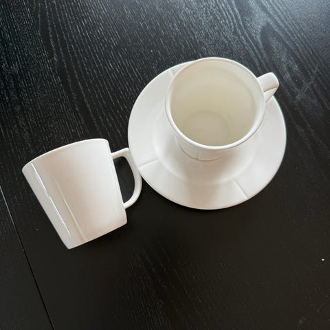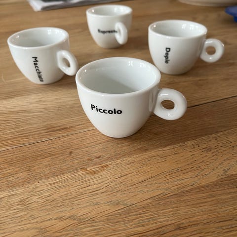 Seks espressokopper med skåler. Aldri brukt.