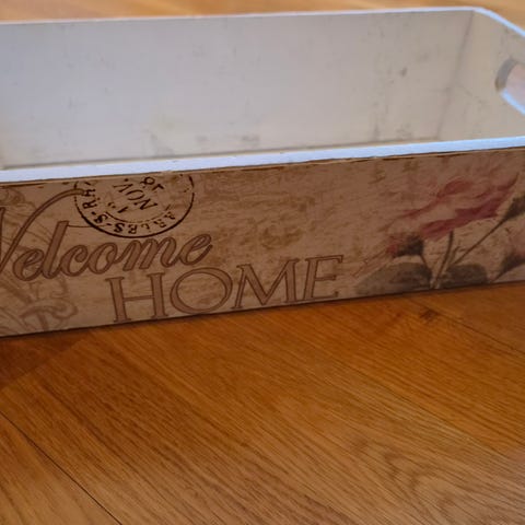 Har en fin keramisk djup bolle brukes til blomster eller andre pynte oppsats. Ingen skader. Den er noe litt tung.