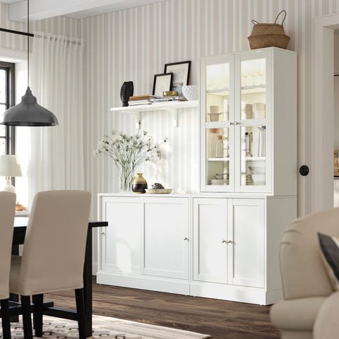 3 stk sort Ikea Havsta skap selges, pent brukte. Denne fargen har gått ut av produksjon og er vanskelig å få tak i. Noe utskjært på baksiden for å trekke ledning i et av skapene, dette er ikke synlig fra utsiden.