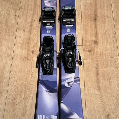Påmontert Rossignol bindinger som kan stilles etter skostørrelse og vekt på kjører.
