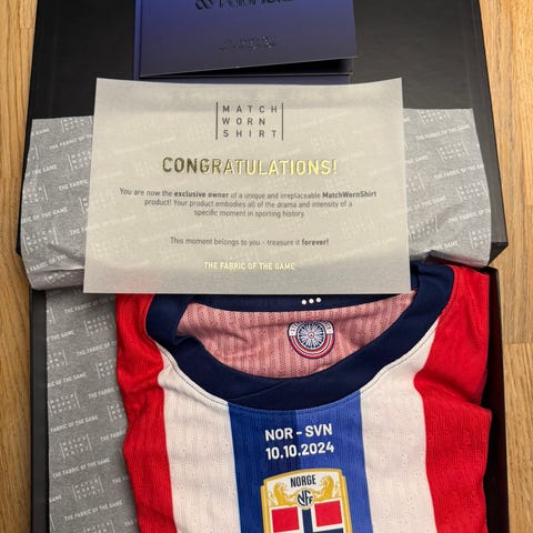 Selger en helt ny drakt signert av ulike norske friidrettsutøvere som Karsten Warholm og Amalie Luel.