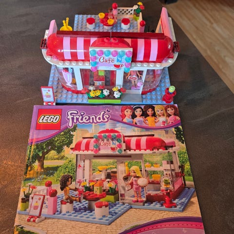 Lego friends pølsebod. Pent brukt. Har blitt bygd opp og ligget i en eske siden.