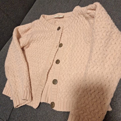 Pen og hel cardigan fra Pomp de Lux. Lyserosa str 98. Renset og klar for ny eier.