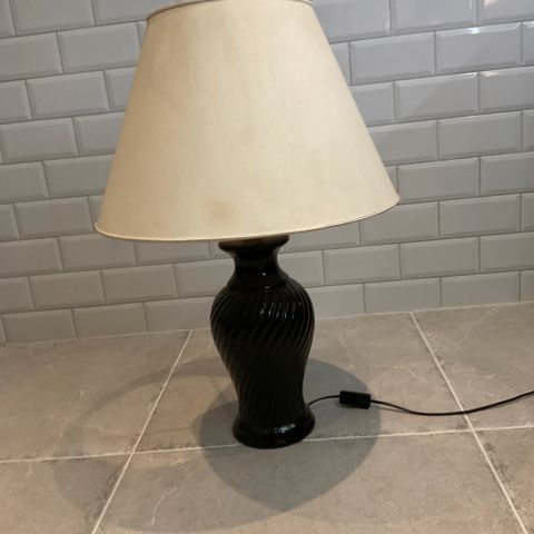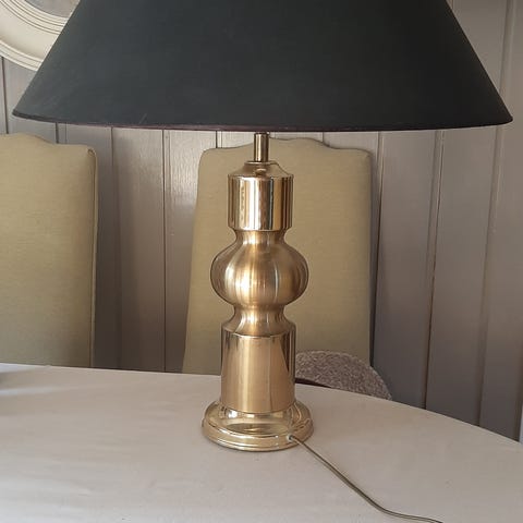 Vakker stor gammel bordlampe i kobber. 60 cm høy. 12 cm fot diameter. 32.5 cm lampeskjermdiameter. Reparasjonsobjekt, pga. den trenger lodding på det punktet som vises midt på bilde 4. Selges pga. har ikke loddelampe. Det er meget enkelt å koble det elektriske (se bilde 5). Denne tilhørte oldefar, som døde i 1964. Har stått og ventet på lodding i 60 år nå. Stort potensial. Kan hentes eller sendes.