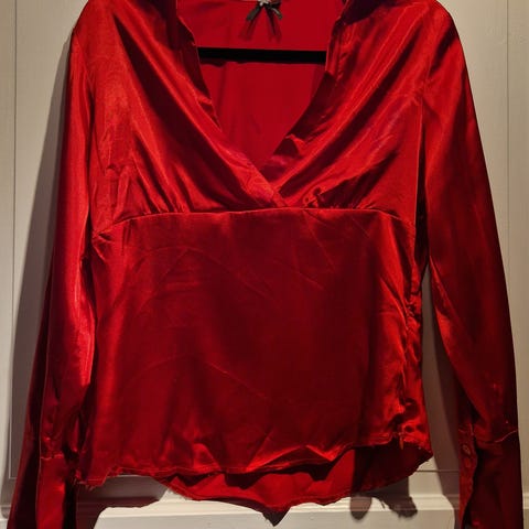Sateng bluse, champagne, utrolig deilig å myk å ha på, stilige armer, passer både small og medium.