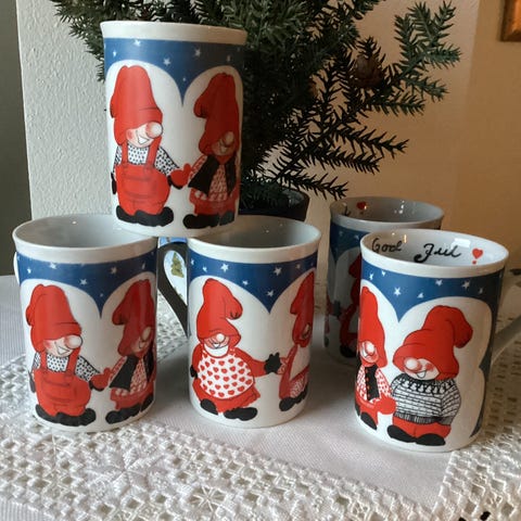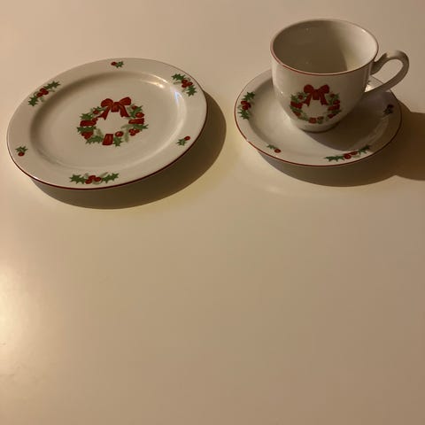 Ønsker å kjøpe de største krusene til dette juleservise. Frokosttallerkener er også av interesse.