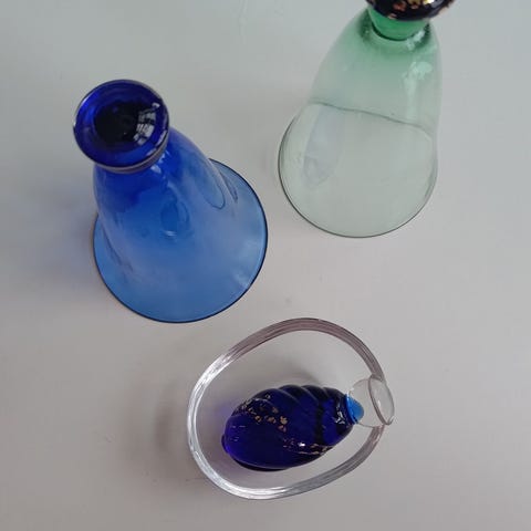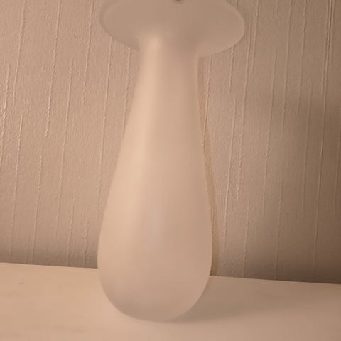 Flott Madonnafigur i frostet glass laget ved svenske Reijmyre glasbruk. er 20cm lang. Har noen få merker. En liten strek ved hendene blandt annet. Kan hentes i Stokke i Vestfold eller sendes mot porto.