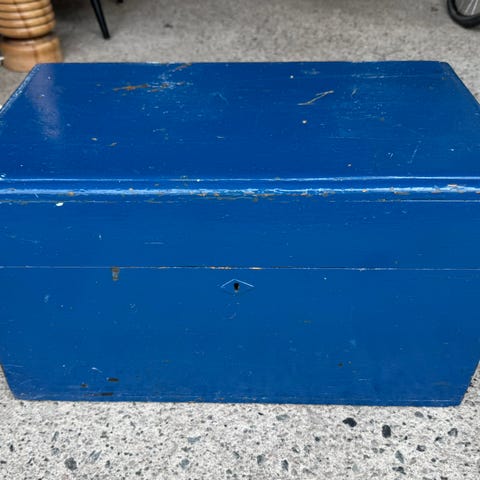 Sjarmerende og gammel grønn kasse til oppbevaring av ting og tang eller verktøy. Flere rom og skuffer.