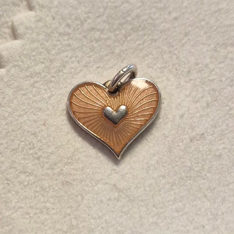 Vintage hjerte-anheng i ekte sølv (925), kan sendes. Det er ca. 1,5 cm høyt. 249,- + frakt.