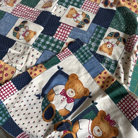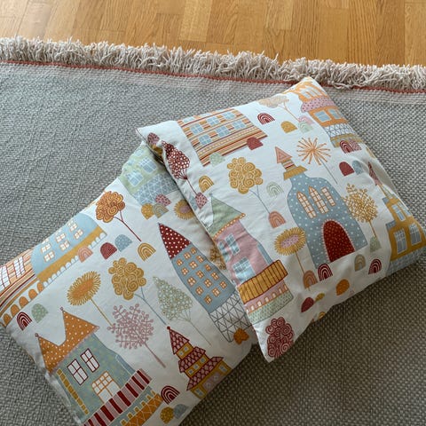 Teppet er sydd av min bestemor. Veldig fin gave til babyshower eller barsel. Sydd i bomullssoff. Teppet er nytt og ubrukt.