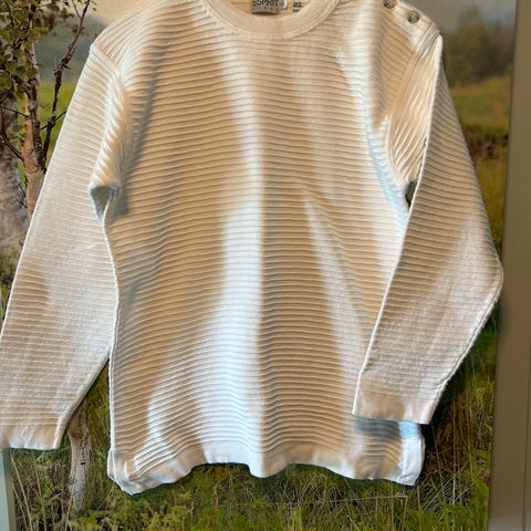 Pen, stripete genser med svart skjorte inni fra Espirit. Det er ikke egentlig en svart skjorte inni, det er bare skjortestoff i halsen, nederst på ermene og nederst på genseren slik at det skal se sånn ut. Genseren er veldig myk og deilig, med masse stretch.