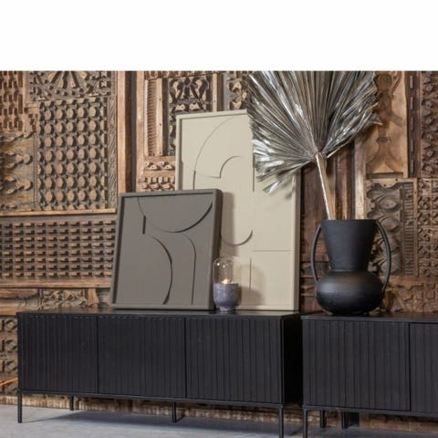 Eike finert MDF med svart beiset / lakkert overflate.