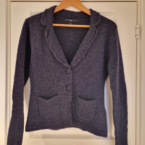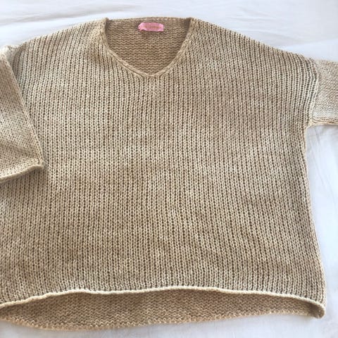 Søt brun genser fra Voice of Europe i strl S. Genseren har hullmønster og v-hals. Genseren er bløt og behagelig å ha på og er lagd av 10% mohair, 50% akry og 40% nylon.