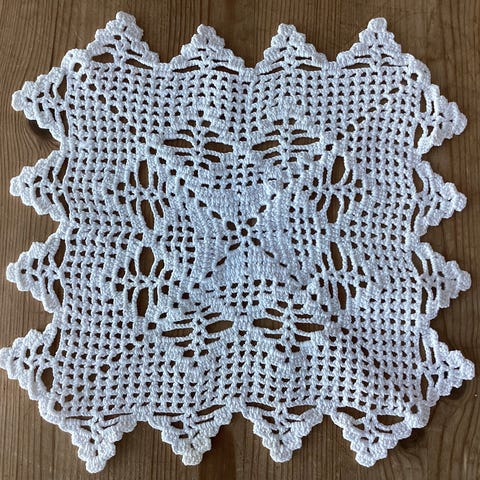 HÅNDARBEID - 3 meget flotte HEKLET brikker. 2 runde som er makne, 17 cm, 1 oval lengde 55 cm, bredde 28 cm. De har samme ROSA-farge, skarp rosa, litt seriss farget. De fremstår «SOM NYE». De runde veier 7 gram hver, den ovale 50 gram. Alle er nyvasket. Brikkene selges kr. 20,- pr. stk, og kr. 50,- for den ovale. Eller alle tre til kr. 75,-. Se bildene! De kan sendes (billig frakt), eller hentes her i Sandefjord.
