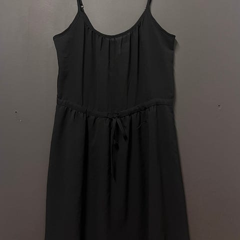 Sort fin kort kjole med doble stropper & strikk i midjen