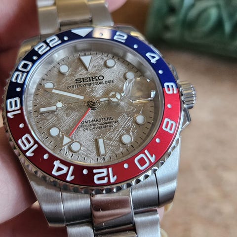 Perfekt til helligdager og jul. Nydelig perlemor skive og rød bezel og gjennomsiktig bakside.