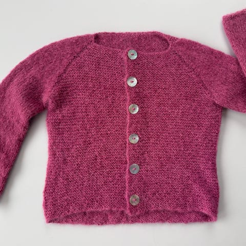 Barnejakke inspirert av Ankers jakke. Jakken skulle være en gave til en niese, men den ble liggende for lenge å vente på knapper. Nå er jakken for liten til henne, men kanskje noen andre kan ha glede av den.