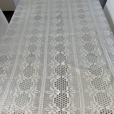 Stort hjemmelaget heklet teppe. Passer med god margin til seng 180x200.
