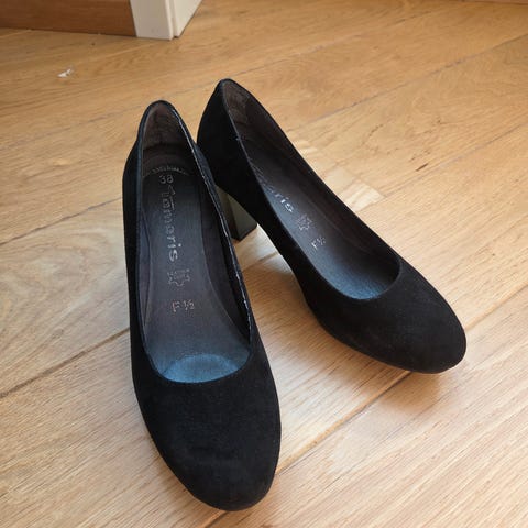 Vakre pumps fra Tamaris. I sort skinn med sølvfargede prikker / nagler vurderes solgt.
