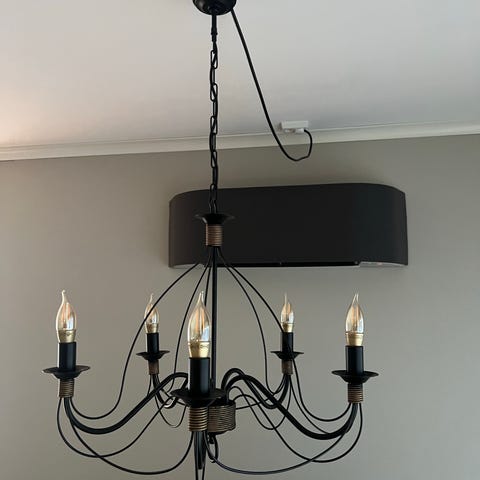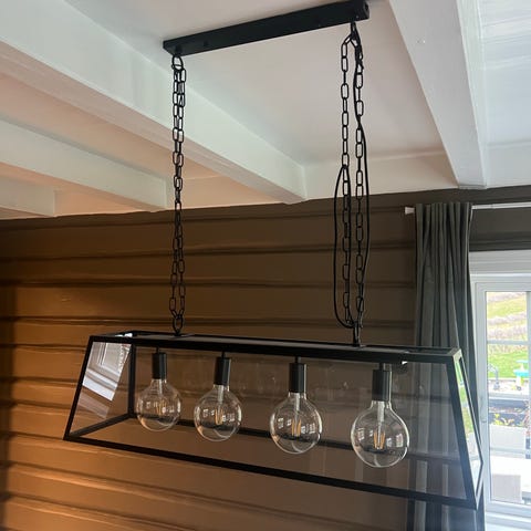 Taklampe i støpejern kjøpt hos covent garden collection. Ingen merker og alt fungerer. Lampen kan justeres i lengden med medfølgende kjetting, på bildet er den på sitt korteste💖