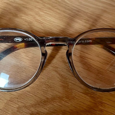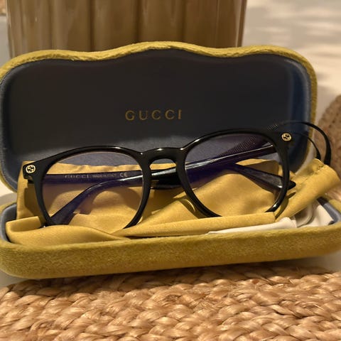 Briller med etui, pusseklut og pose