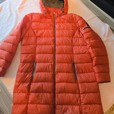 Pent og lite brukt jakke/kåpe som er kjøpt for mange år siden og har bare blitt hengende. Den har belte og dobbel krage, som kan kneppes fra hverandre, se bilde.