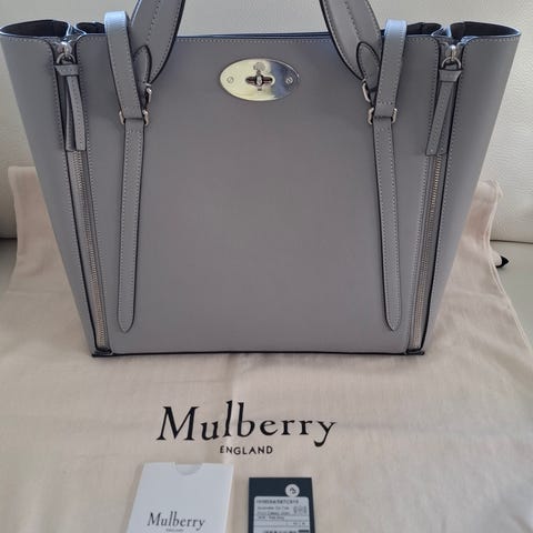 Selger to Mulberry Vesker med kvittering, støvpose, eske og pose. Alle er kjøpt på Mulberry i Oslo.