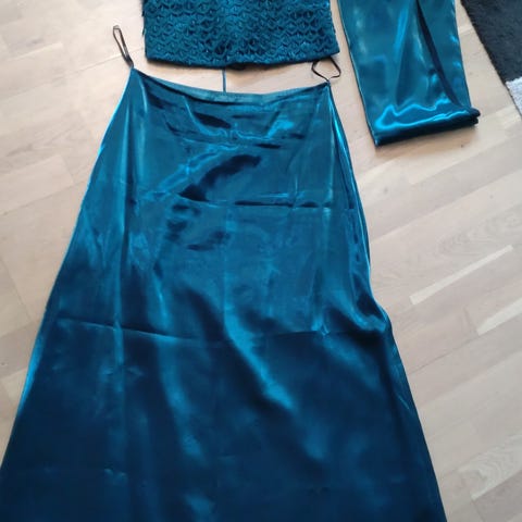 Todelt festkjole, vintage. Pent brukt/som ny. Merket Millennium,. Brokademønstret glatt/skinnende/behagelig stoff.