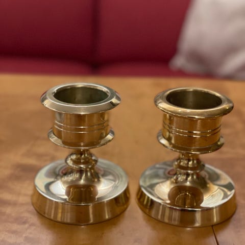Kraftig og pen lysestake i messing.