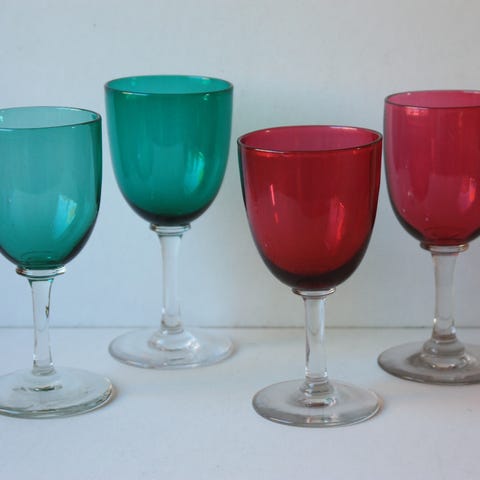 Fargede antikke glass, ett med gullmaling