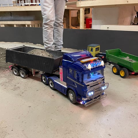 Følger med en fjernkontroll og mottaker, men ingen batterier.