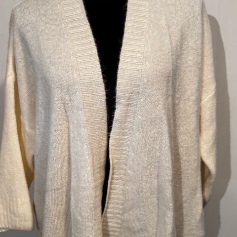Nydelig lysegrå supermyk Cardigan i størrelse M. Ubrukt og med lappen på. Litt oversized så passer nok en L og. Se bilder for mer info om plagget.