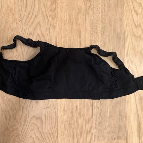 En helt ny og ubrukt sports-BH selges med lappene fortsatt hengende på etter kjøp. Størrelse large.