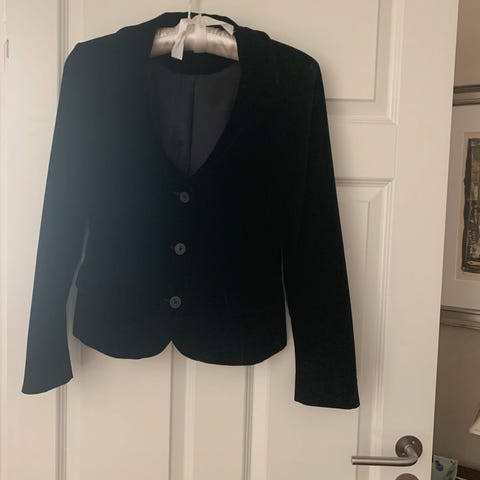 Svart / sølv fin strikkejakke / cardigan fra Claire - str. 40. Smal og kort modell. Glidelåslukking i front og påsydde lommer. Fremstår i veldig fin stand.
