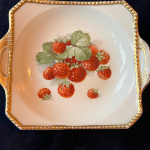 Nydelig fat stemplet Silesia dekorert med blader, blomster og «gull» kvister.