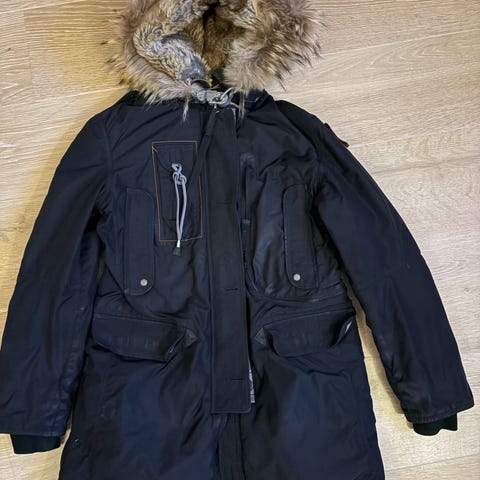 Jakken er brukt en del og derfor er det noe slitasje, men fortsatt i god tilstand.