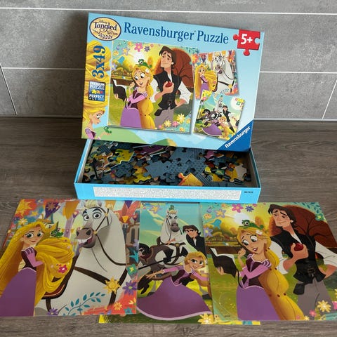 3 puslespill og 1 memory-spill i samme eske. Komplett med alle deler.