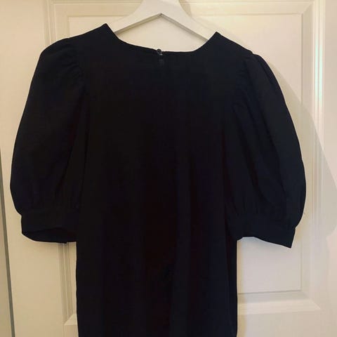 Flott sort topp med puffermer og glitter. Ser helt ny ut.
