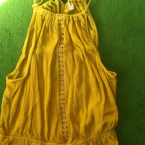 Veldig fin kjole med volanger og knyting i nakken. Lite og pent brukt. Selges fordi den ikke passer meg😊 Porto kommer i tillegg.