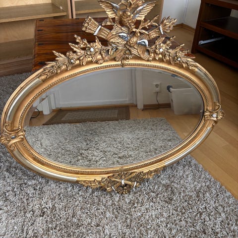 48x62cm (ytterside på trerammen, selve speilflaten har målene 25x39cm)