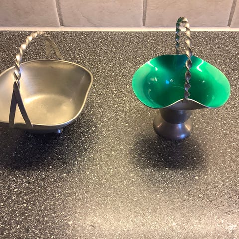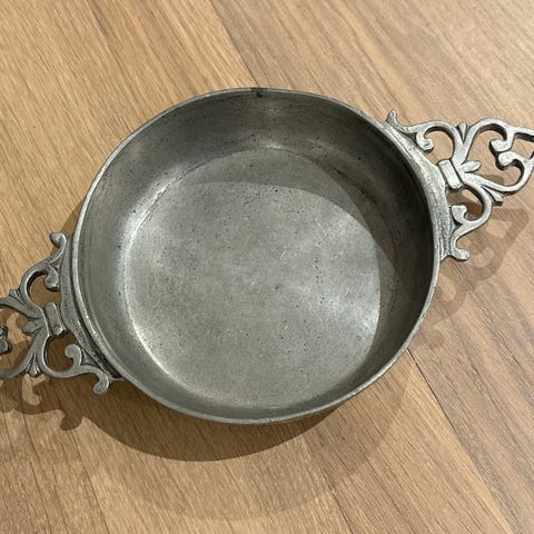 Vintage , retro , søte skåler i tinn med hank , patina og små skjevheter forekommer , sender gjerne mot porto , pris er for alle 4 , se gjerne mine andre annonser
